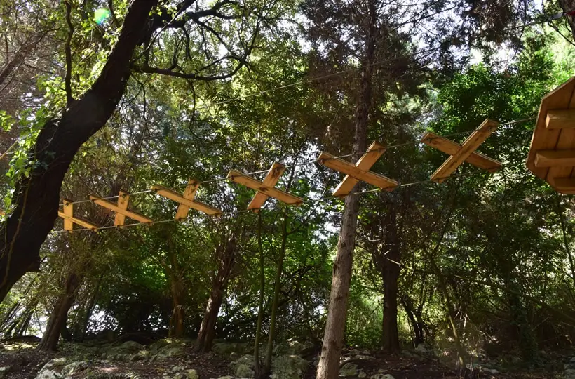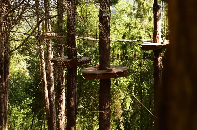 El circuito incluye algunos tramos de tirolina integrados en el recorrido y, además, dentro del mismo paquete completo se incluyen también las tirolinas grandes del parque, aunque estas se realizan fuera del recorrido en sí. De esta manera, la experiencia reúne el circuito entre árboles y la parte más aérea y espectacular de las tirolinas dentro de una misma actividad, ofreciendo una jornada mucho más rica, variada y entretenida.