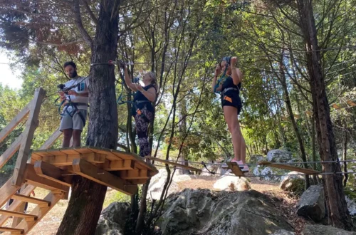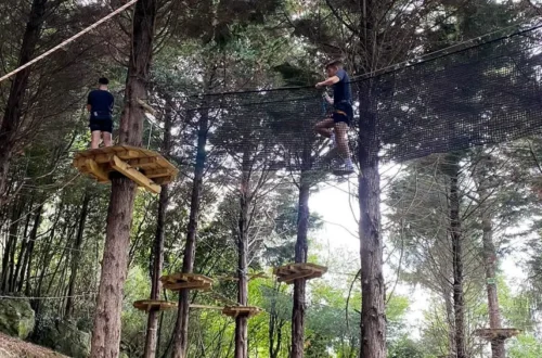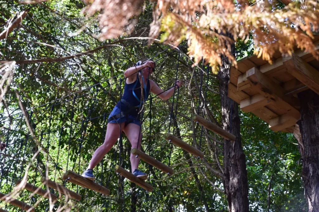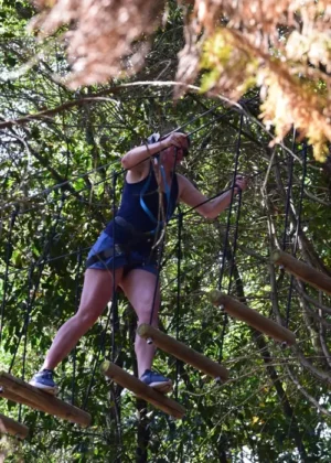 El circuito incluye algunos tramos de tirolina integrados en el recorrido y, además, dentro del mismo paquete completo se incluyen también las tirolinas grandes del parque, aunque estas se realizan fuera del recorrido en sí. De esta manera, la experiencia reúne el circuito entre árboles y la parte más aérea y espectacular de las tirolinas dentro de una misma actividad, ofreciendo una jornada mucho más rica, variada y entretenida.